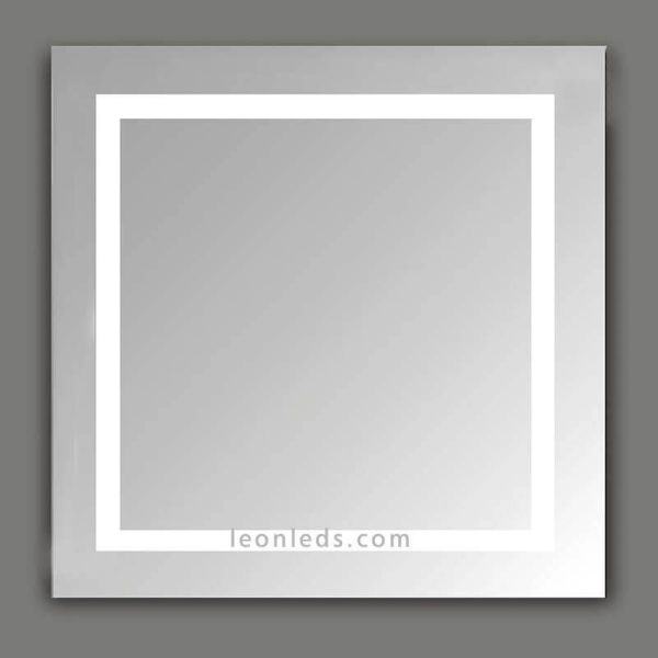 Espelho com luz LED para instalar no banheiro disponível em 2 medidas, um modelo quadrado de 77Cm x 77Cm com uma potência de 41W e uma intensidade de luz de 3.539Lm e o outro modelo retangular de 75Cm x 110Cm com uma potência de 51W e uma intensidade de luz de 4.443Lm. Estes dois modelos estão disponíveis em 2 diferentes tons de luz, Calid Light 3000K e Natural Light 4000K, estas opções podem ser selecionadas ao comprar o LED Bathroom Mirror.