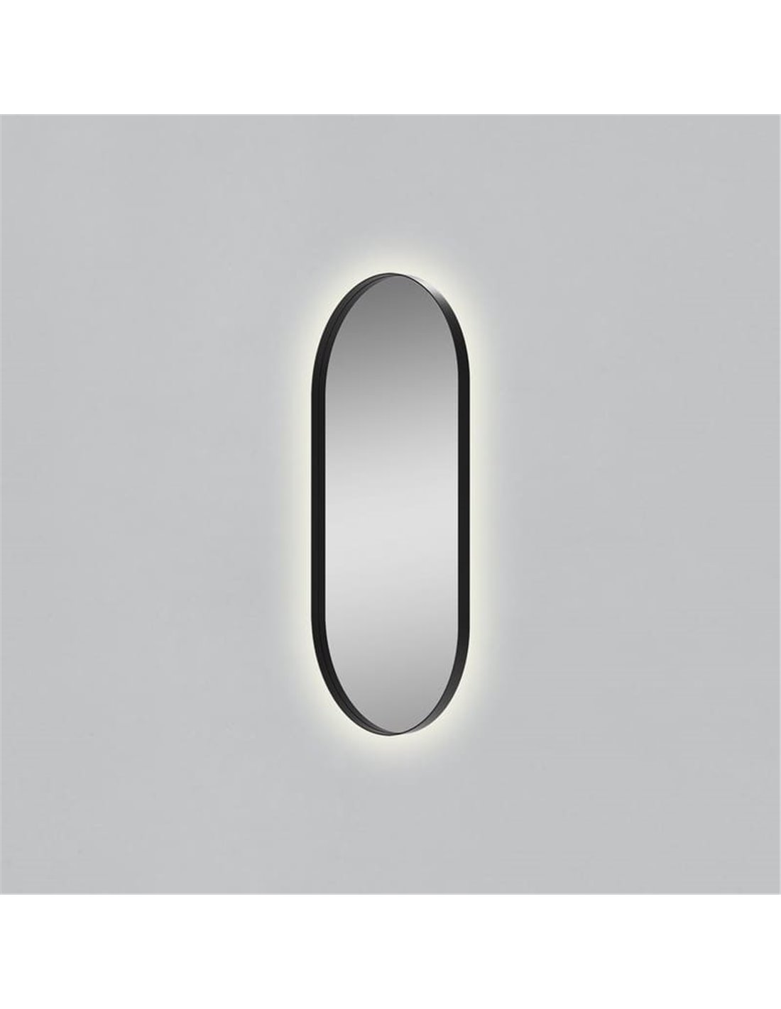Espelho LED Oval Médio DANIELA 1200(h)x600: Preto, 55W 3000K, CRI90, IP44.