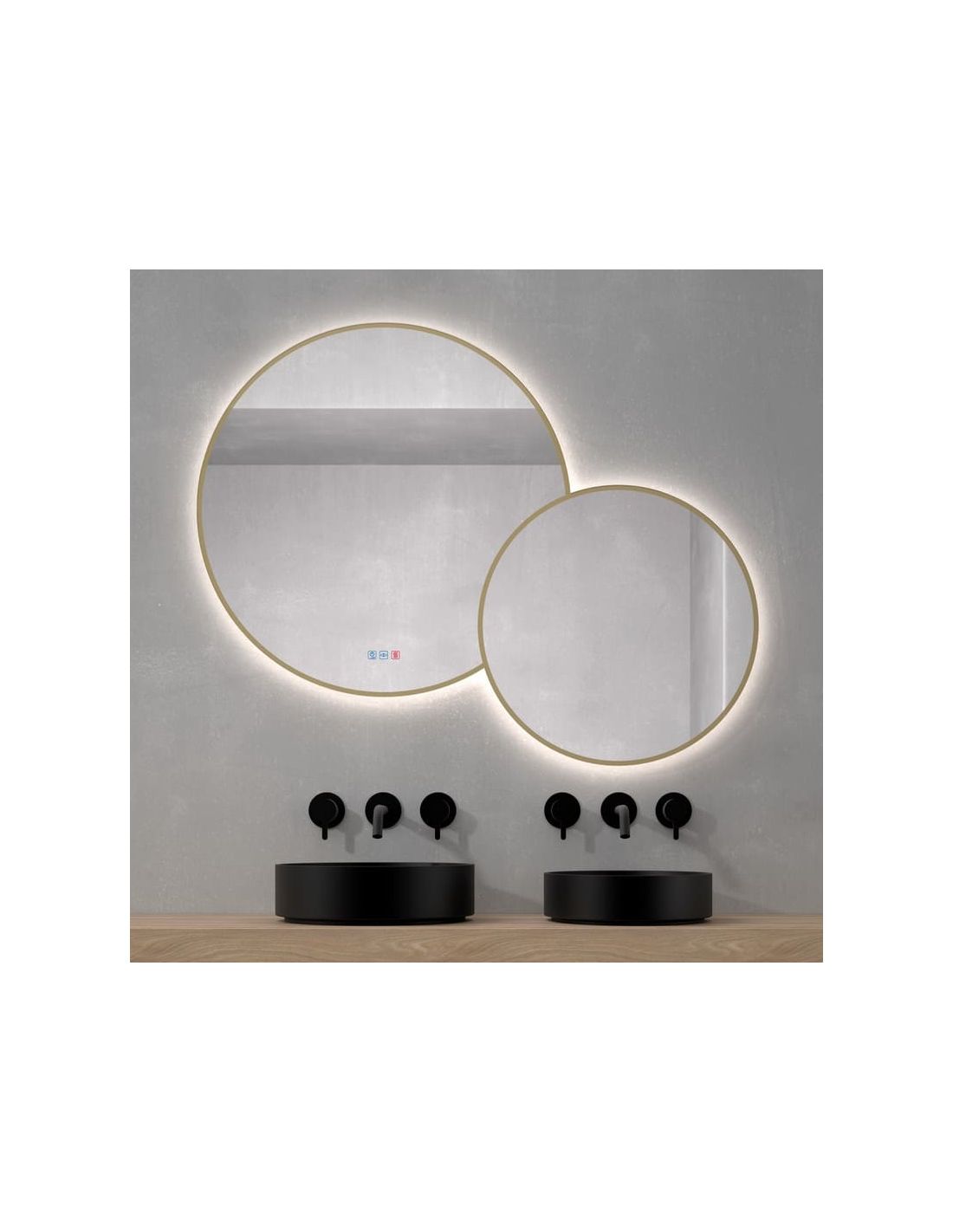 Espelho redondo retroiluminado LED BRASILIA moldura dourada 120x95cm com triplo toque, dimmer e antiembaçante