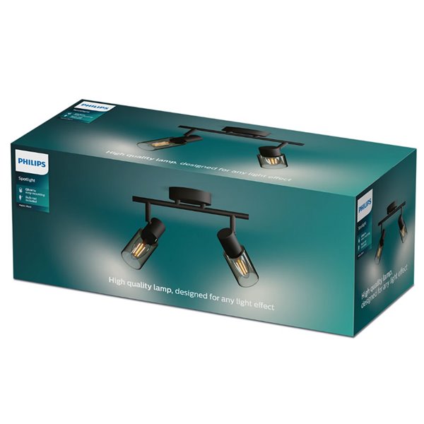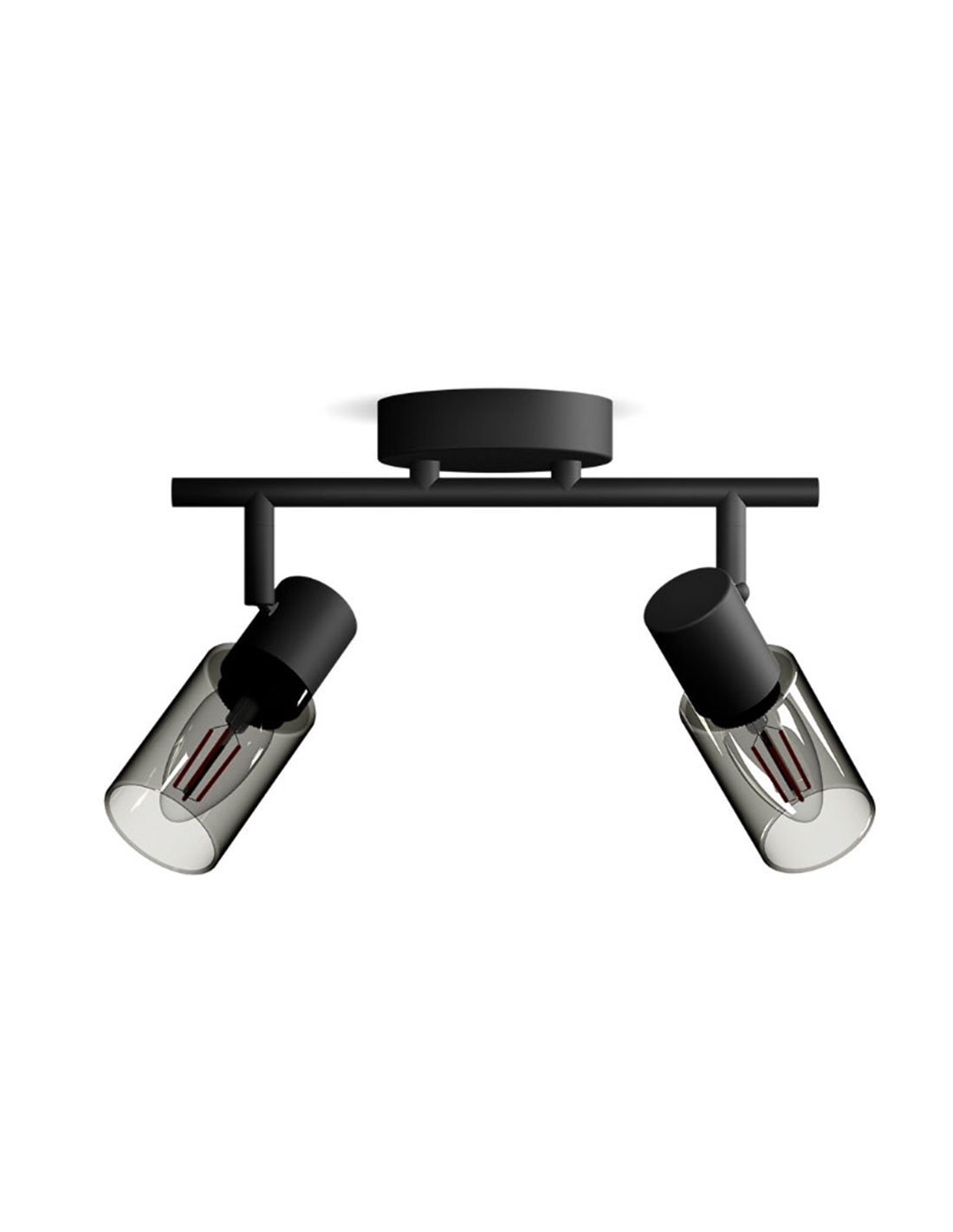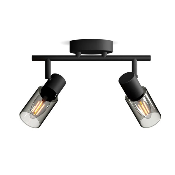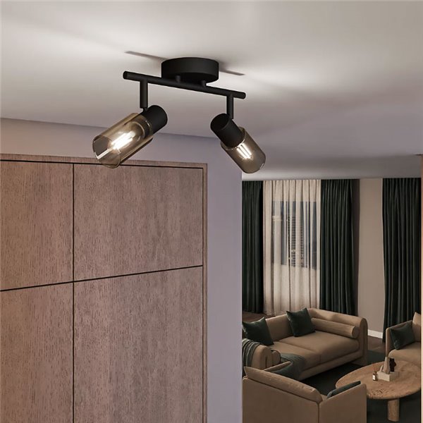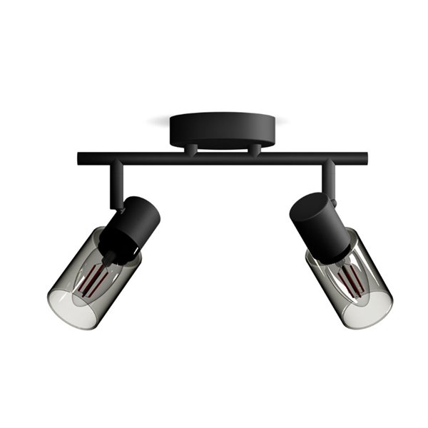 PALMS Tira de 2 lâmpadas com vidro alongado preto fumê . Compatível com 2 lâmpadas E14 (não incluídas) e fácil instalação graças ao sistema ClickFix . Ideal para um toque moderno em qualquer espaço.