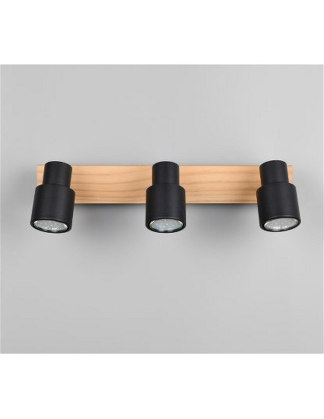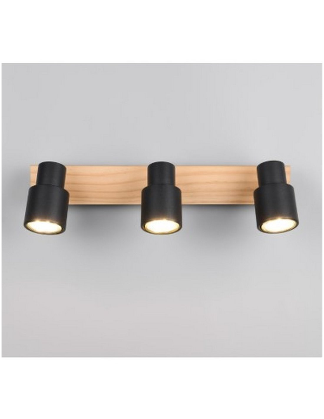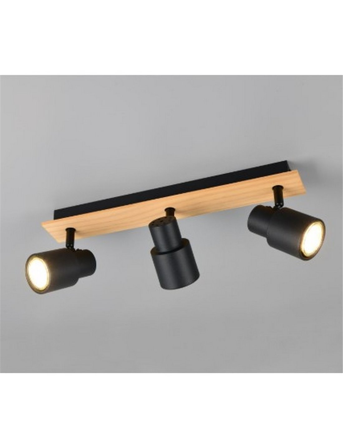 A faixa de teto ajustável de 3 pontos PIERRE apresenta um design moderno e funcional com detalhes em madeira e acabamento preto . Seus focos reguláveis permitem direcionar a luz de acordo com as necessidades de cada espaço. É compatível com lâmpadas GU10 de até 10 W (não incluídas) e sua certificação IP20 o torna ideal para ambientes internos.