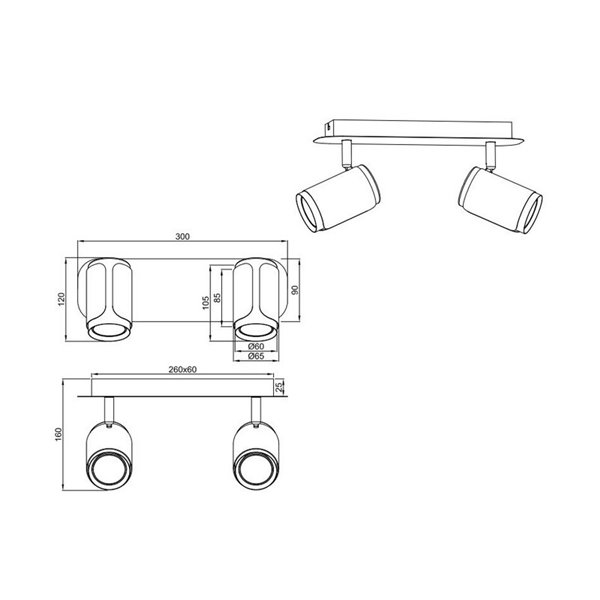 Fita de luz ajustável GILLAN de 2 pontos , compatível com 2 lâmpadas GU10 de até 10 W (não incluídas). Design moderno e funcional com certificação IP20 , ideal para interiores.