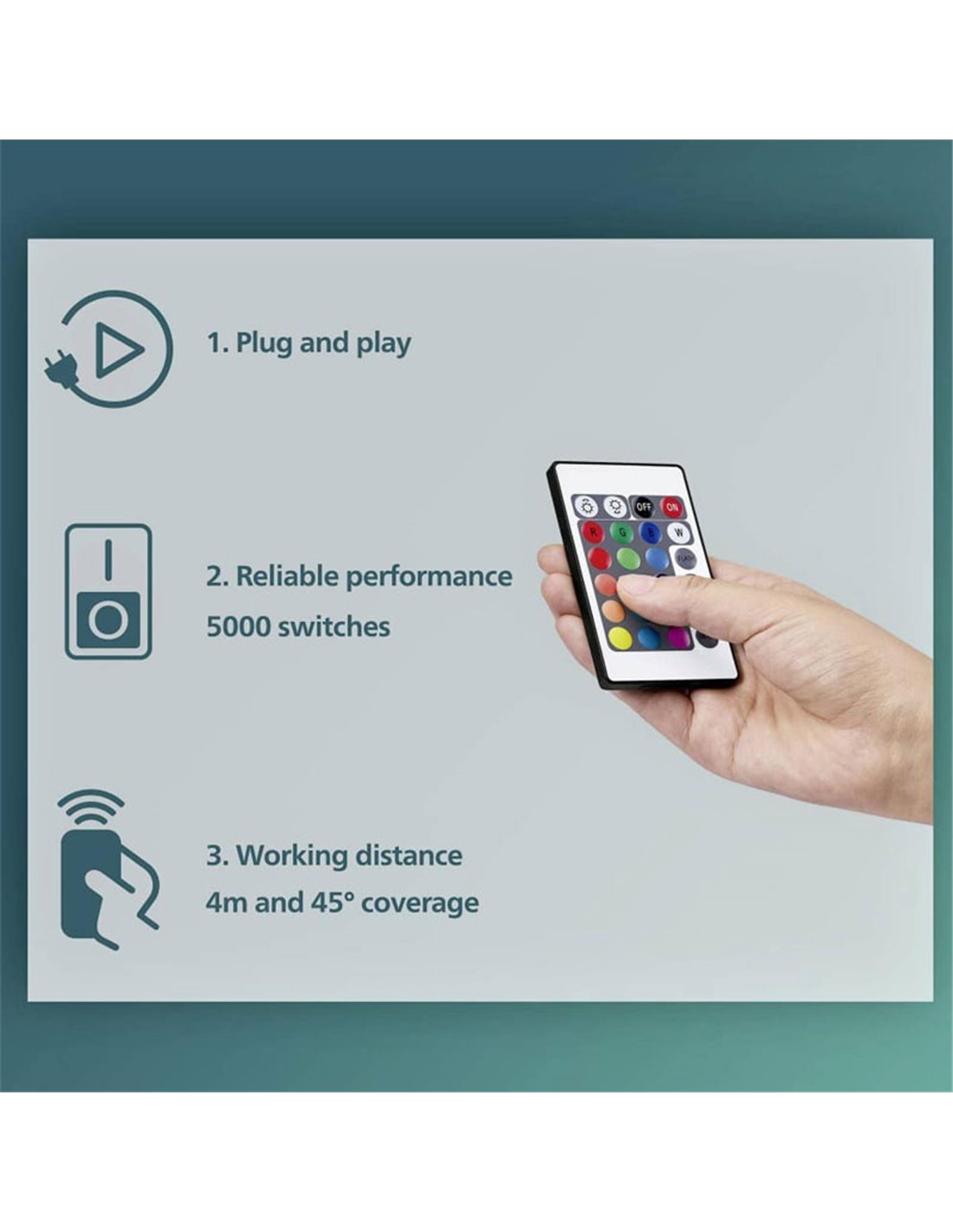 A faixa de luz LED 2M da Philips é uma solução de iluminação versátil e eficiente, ideal para melhorar a atmosfera de qualquer ambiente. O seu design fino e flexível facilita a instalação em pequenos espaços, adaptando-se a diversas aplicações decorativas e funcionais.