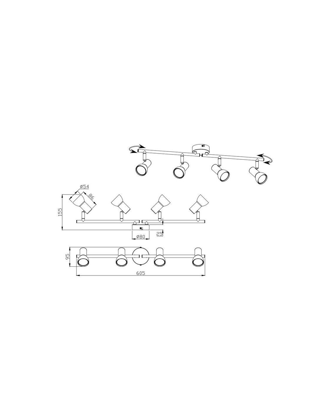 A faixa de teto CANTAR com 4 focos ajustáveis na cor branca oferece uma solução de iluminação versátil e moderna. Compatível com lâmpadas GU10 (não incluídas) e com classificação IP20 , é ideal para iluminar qualquer espaço, desde salas a cozinhas ou corredores.