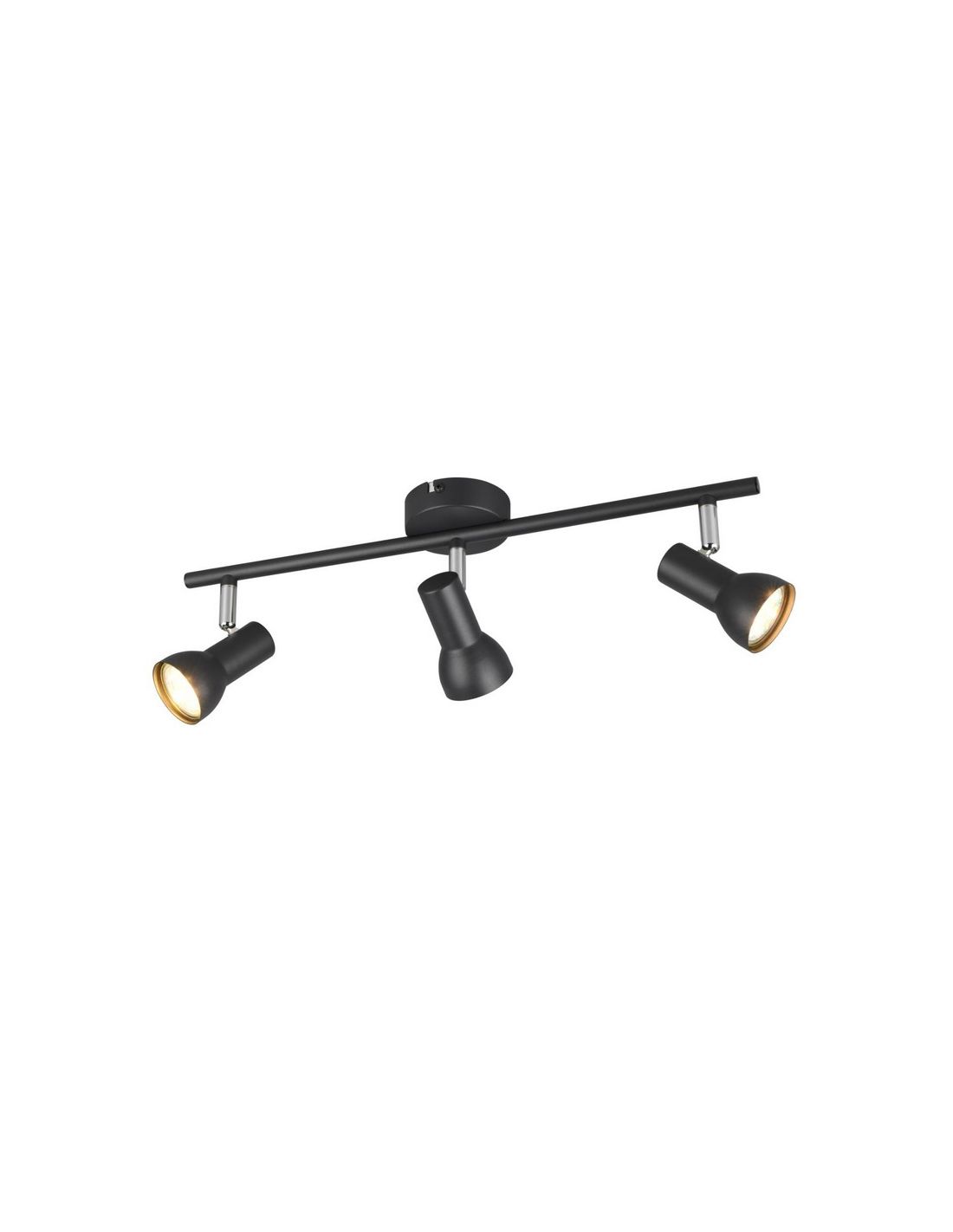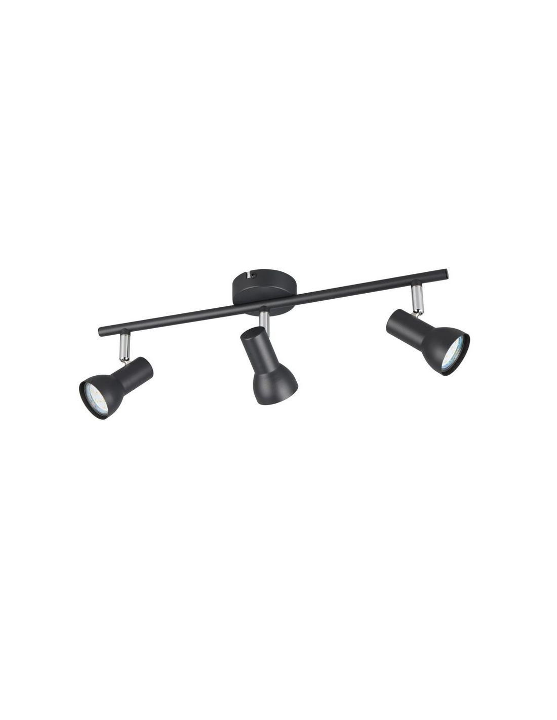 A faixa de teto CANTAR com 3 focos ajustáveis na cor preta oferece uma solução de iluminação moderna e versátil. Com lâmpadas GU10 (não incluídas) e classificação IP20 , é ideal para iluminar espaços como salas, cozinhas ou corredores.