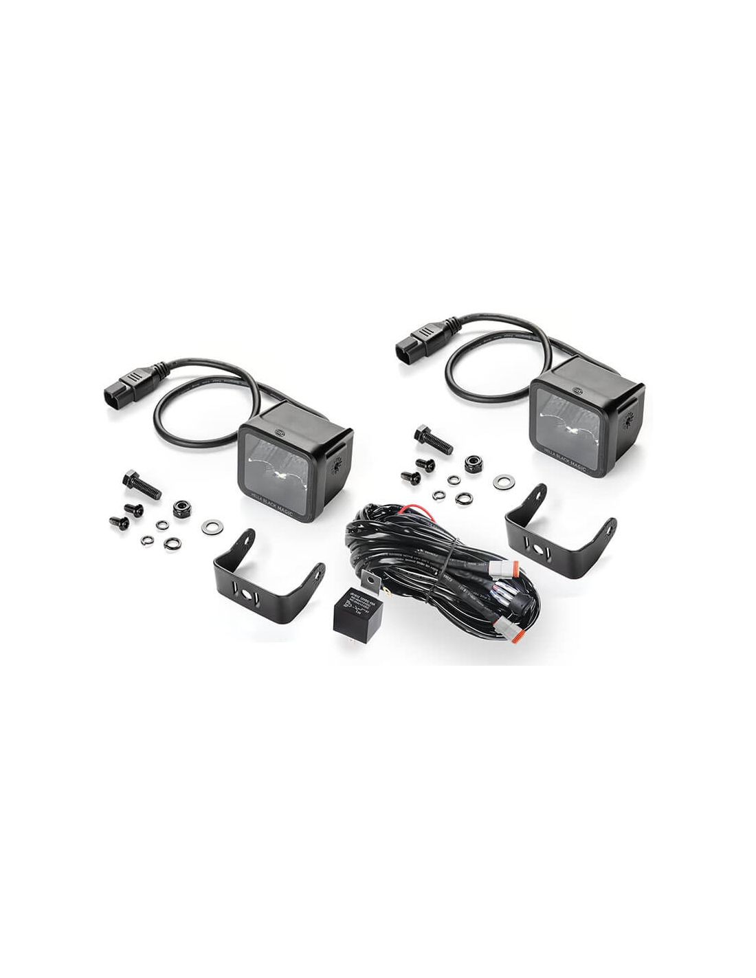 Este kit inclui duas unidades e tudo o que é necessário para uma instalação rápida: um chicote elétrico com conector DEUTSCH, um interruptor, uma tomada e um relé . Seu design compacto o torna perfeito para instalação em para-choques, tetos, para-lamas ou dentro da carroceria.