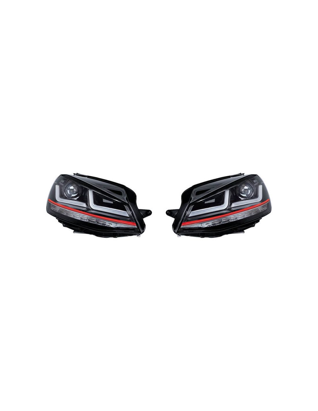 Faróis dianteiros LED GTI homologados para Volkwagen Golf 7 antes do Restyling (2012-2016) da marca Osram com 2 anos de garantia. Inclui pisca-pisca LED progressivo, luz de posição LED, farol baixo LED, luz diurna e farol alto LED, é um farol Full LED. Válido para Golf 7 que inclui faróis Xenon.