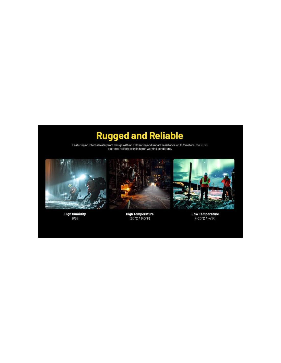 O farol NITECORE NU53 foi projetado para oferecer iluminação confiável e potente em qualquer situação. É a opção ideal para quem procura equipamentos leves, com grande autonomia e resistência para atividades outdoor e resgates noturnos.