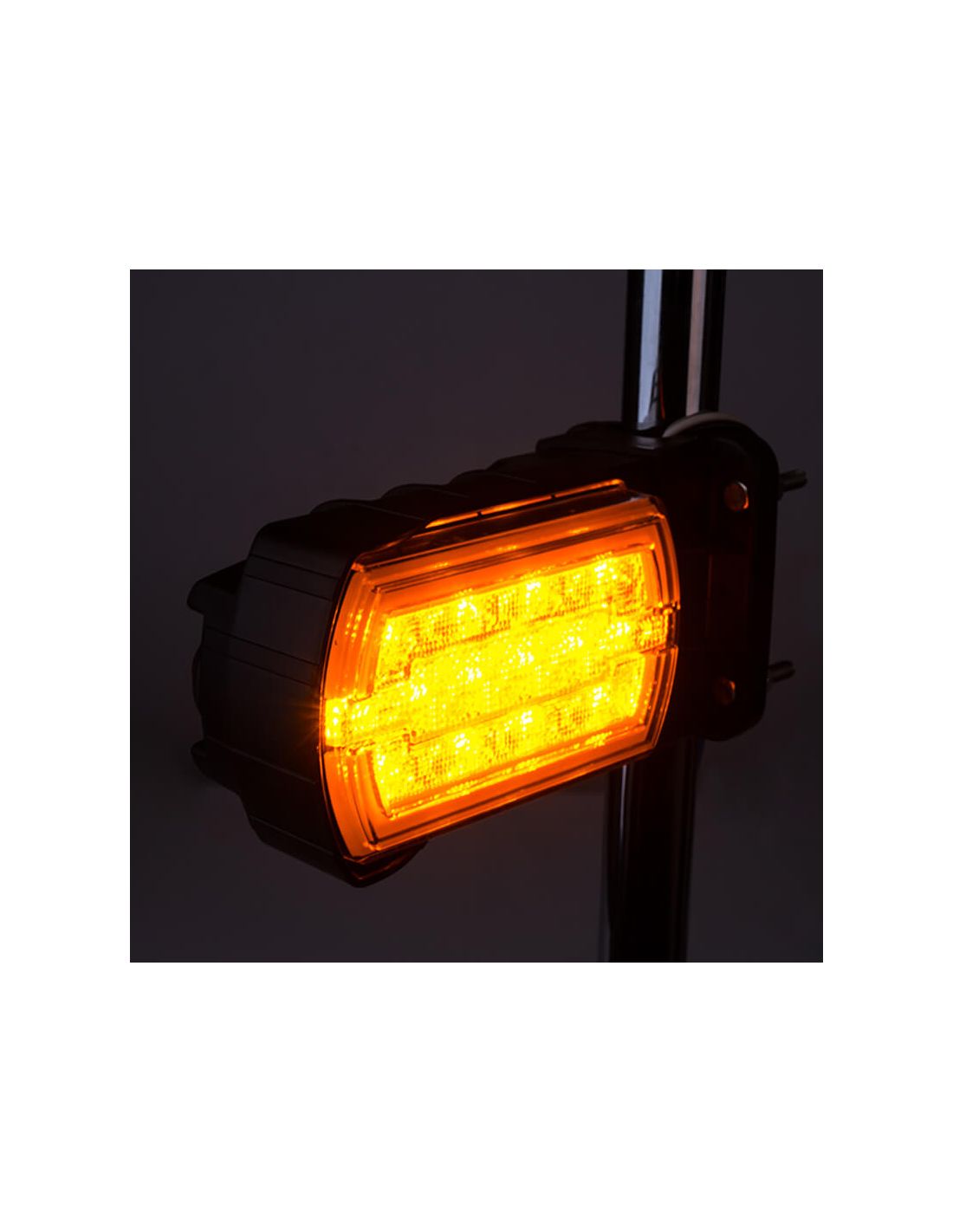Farol de LED homologado com 2 funções , luz de posição e luz de seta frontal e lateral (A, 1 e R10), perfeito para instalação na parte frontal de veículos agrícolas ou industriais. Este farol retangular é totalmente hermético e submersível, com classificação IP68, inclui 1 metro de cabo e é válido para 12 e 24 volts. O suporte permite que este farol seja instalado em uma barra com diâmetro de 20 a 30 mm, podendo ser instalado tanto no lado esquerdo quanto no direito.