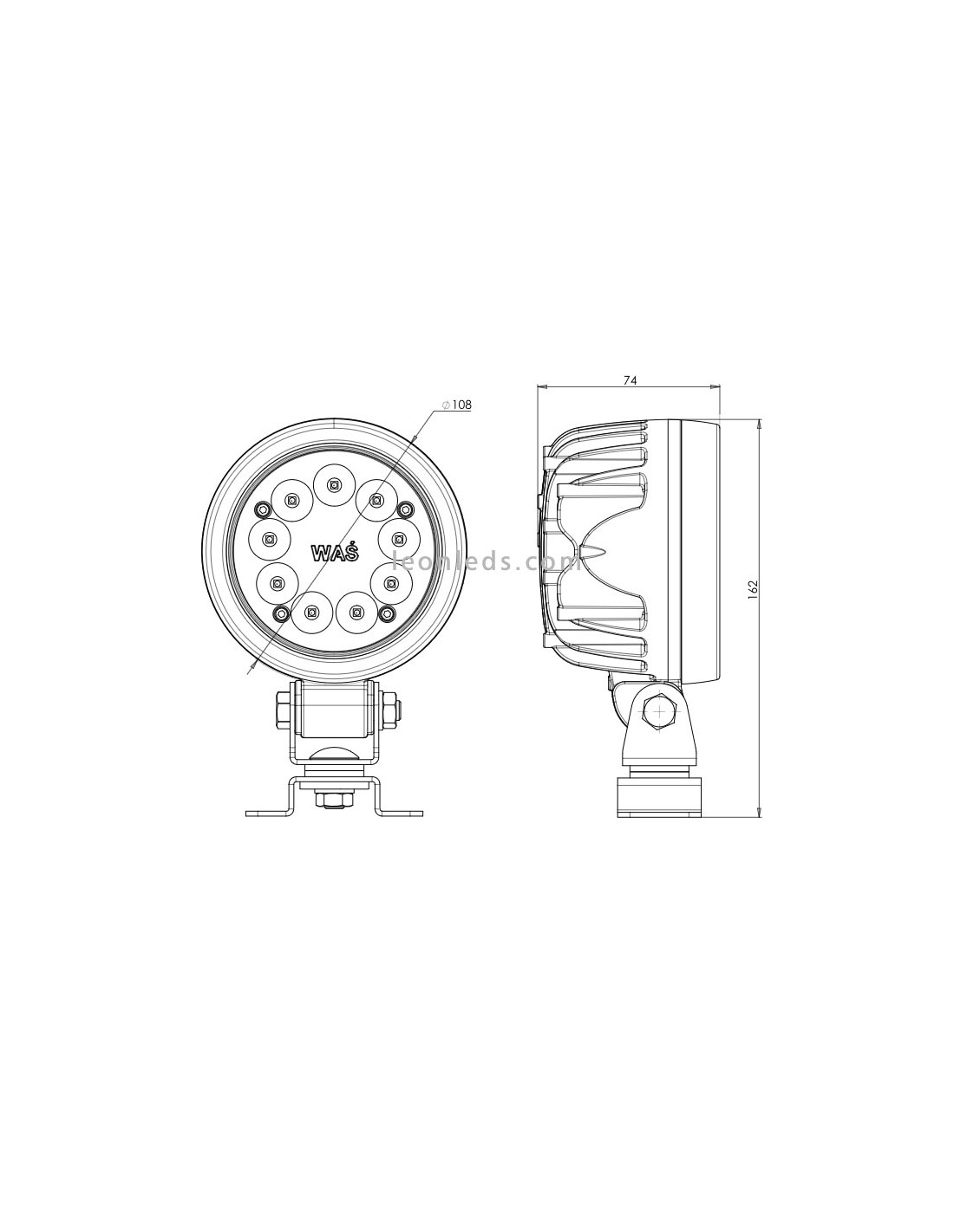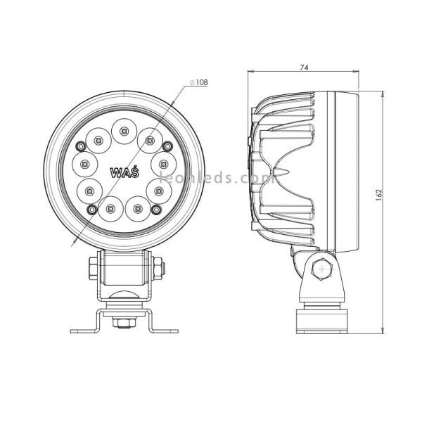 Luminária de trabalho LED redonda com potência de 47,5W , intensidade de luz de 5000Lm, grau de estanqueidade IP98, fabricada com corpo de alumínio e 9 chips de LED de última geração.