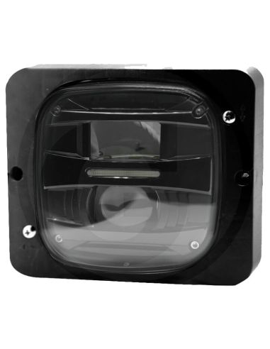 Farol LED embutido para uso agrícola e industrial, com farol alto (longo), farol baixo (curto) e luz de posição . Alta proteção IP69K, conexão faston H4 +, carcaça de alumínio e lente convexa. Compatível com Fendt, Case, Steyr, John Deere, Zetor e muito mais .
