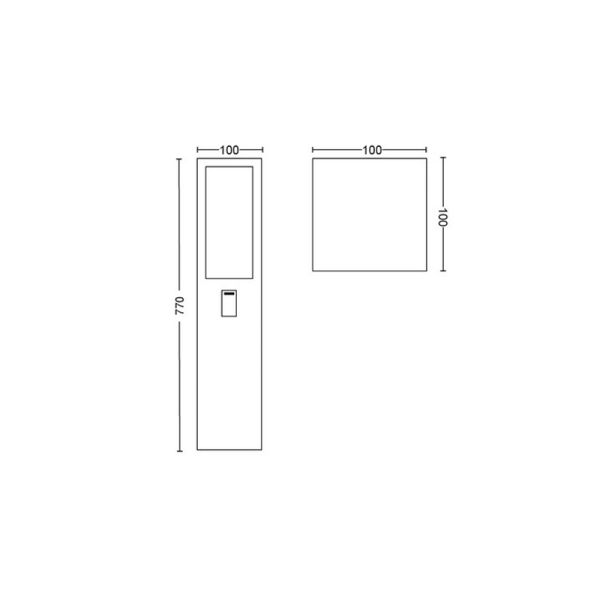 O poste exterior Impress fornece-lhe luz branca quente ou fria ou mais de 16 milhões de cores, para que possa personalizar os seus terraços, pátios ou jardins. Philips Hue funciona com Amazon Alexa, Apple Homekit e Google Assistant para que você possa controlar sua iluminação por voz. Isso requer um Hue Bridge, que é vendido separadamente. Dimensões: altura de 77 cm, comprimento de 10 cm, largura de 10 cm e peso de 2.255 kg.