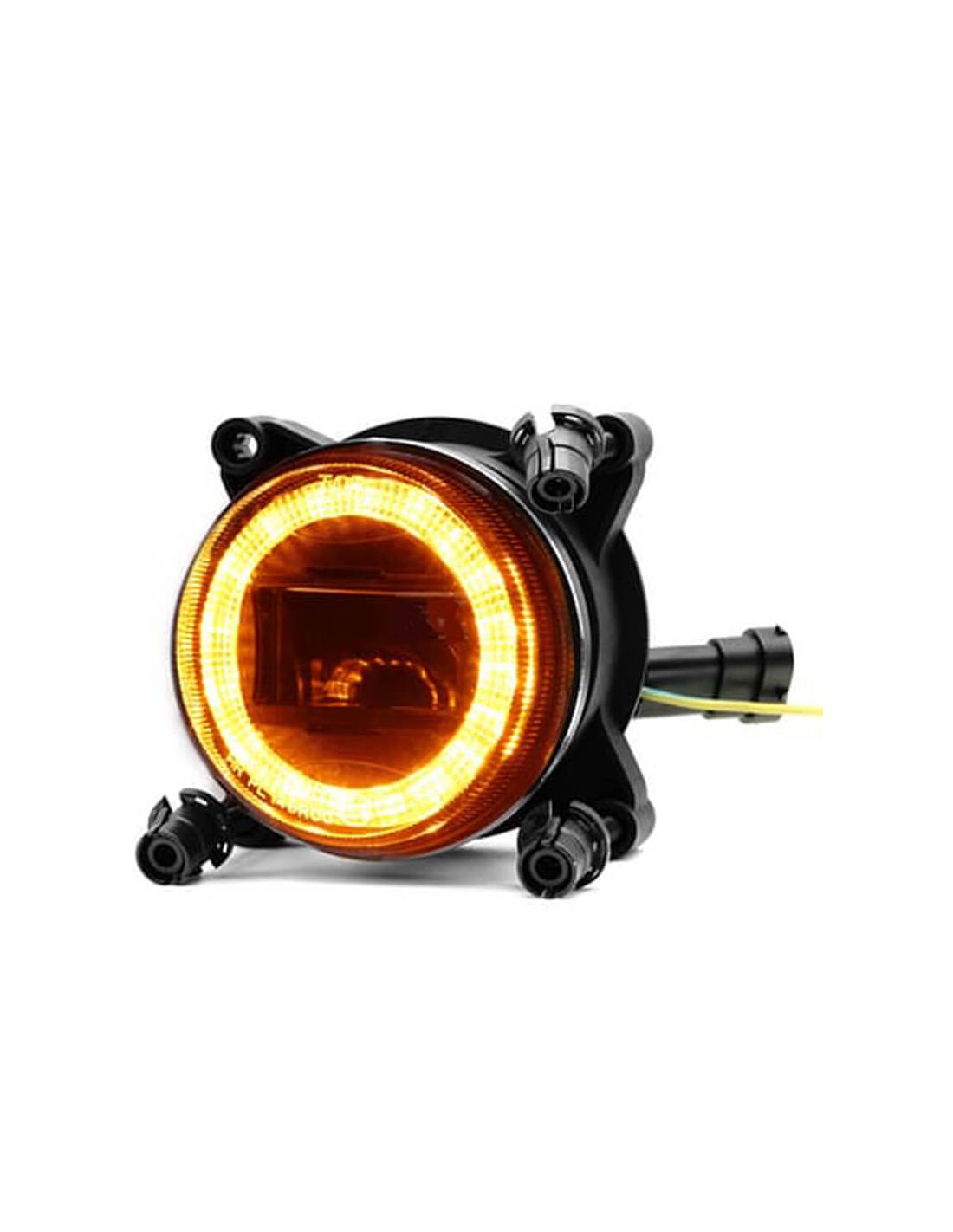 Farol LED redondo de 90 mm para 12-24 V , com luz alta e intermitente integradas. Potência de 28 W/18 W , luz branca de 6000 K e sinal âmbar. Proteção IP69K , conector H9 e inclui suportes para montagem embutida ou com parafusos . Aplicação universal em tratores, caminhões e veículos de construção.