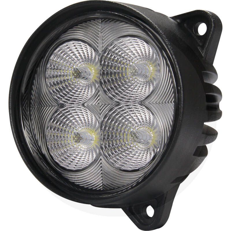 Farol de trabalho LED redondo com potência de 40W, intensidade luminosa teórica de 4.000 lúmens e intensidade luminosa efetiva de 2.392 lúmens. Inclui um conector Deutsch de 2 pinos para instalação (com um adaptador HB3 para Deutsch), é totalmente à prova d'água (IP69K) e possui certificação ECE R10 CISPR25. É compatível com tensões de 12V e 24V e apresenta um design específico para iluminação de trabalho. Este modelo de farol de trabalho LED é ideal para tratores New Holland e Case; verifique as dimensões.