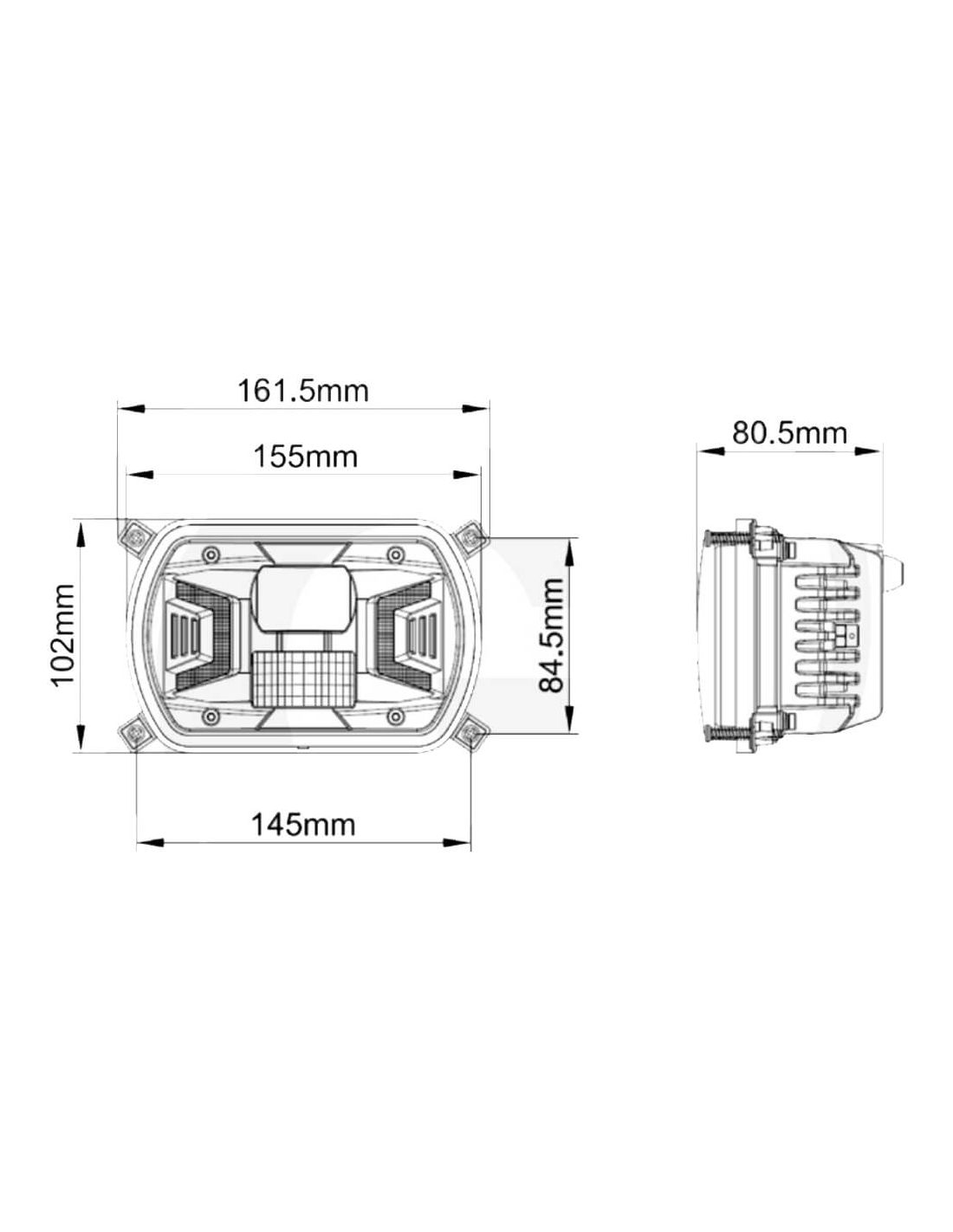 Farol quadrado de LED H4, 12V-24V, homologado, com luz alta, luz baixa e luzes de estacionamento. Compatível com New Holland TD e TD5000. Alta potência, classificação IP69K e fácil instalação.