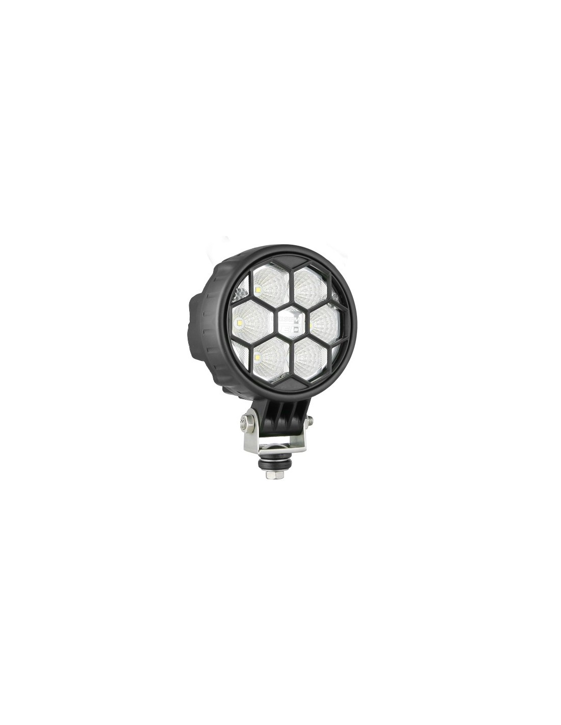 Farol redondo LED com cabo Ø 117mm, válido para 12-24 V. Lente transparente disponível com ângulo de feixe de 50º e 4º e com intensidade luminosa de 2500 - 2000 - 1500 lm.