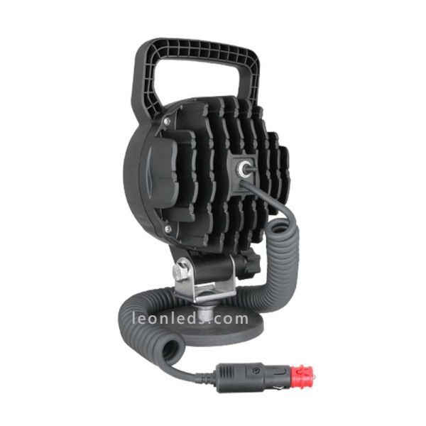 Luz de trabalho LED com interruptor e com conector de isqueiro com 8 metros de cabo em espiral, com 3 potências diferentes, 2 óticas disponíveis e com pega e sem pega.