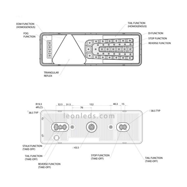 O M900 Tem 6 funções e triângulo reflexivo, um dos drivers traseiros para o mercado de plataforma de reboque ou caminhão. a tensão admitida deste piloto é de 16V a 32v e tem um conector de 7 pinos no centro do piloto, e 2 (superseal) 2 pinos conectores no lado esquerdo do piloto e 3 conectores no lado direito, cada um para uma função diferente você pode verificar em uma das fotos.