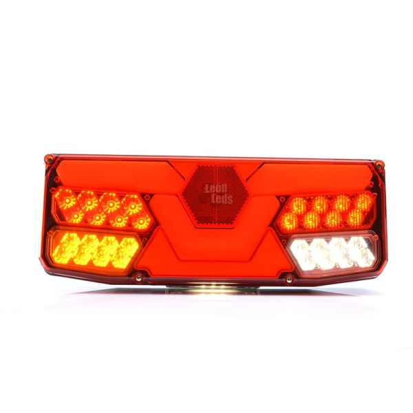 Luminária LED para instalar em camiões rígidos ou carrinhas, com 2 metros de cabo válido para instalações 12V e 24V, com 6 funções na luz direita e 7 funções na luz esquerda.