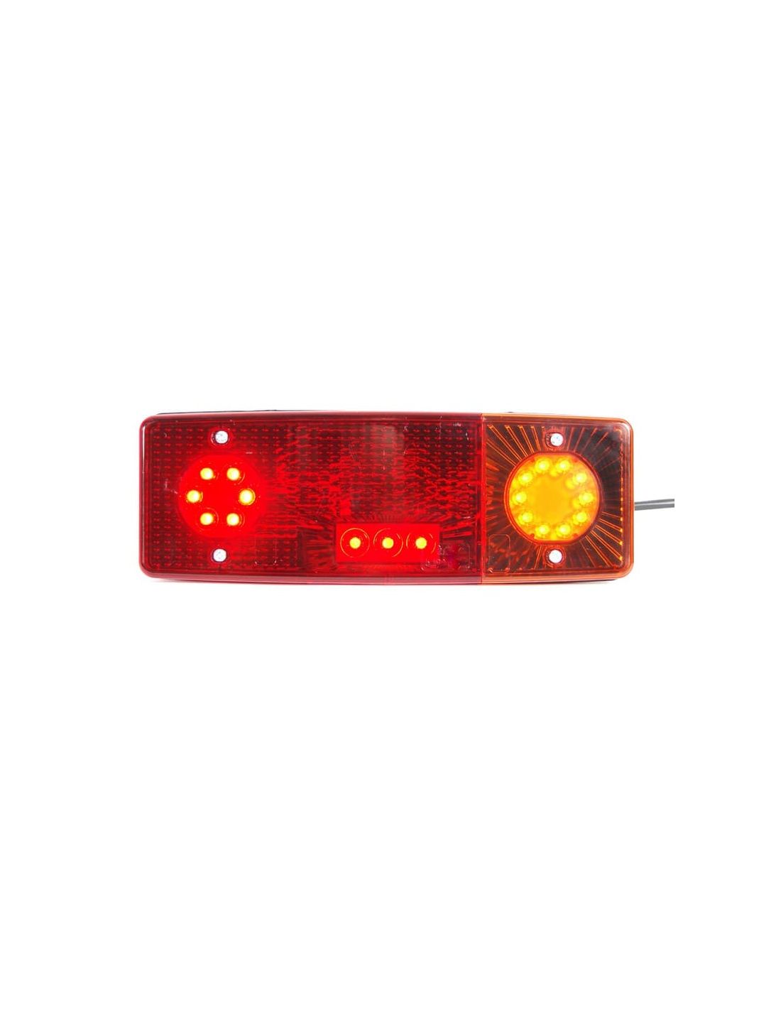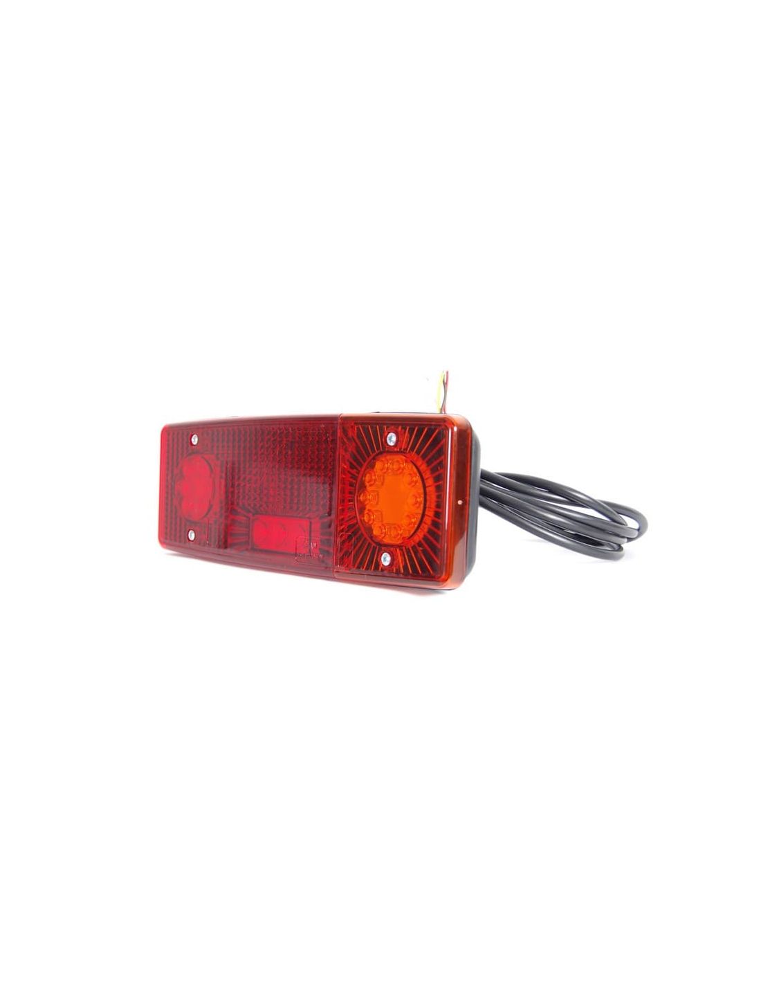 Lanterna Traseira LED retangular para trator , lado direito com 3 funções e lado esquerdo com 4 funções, com 2 metros de cabo para instalação, funciona nas tensões de 12V a 24V.