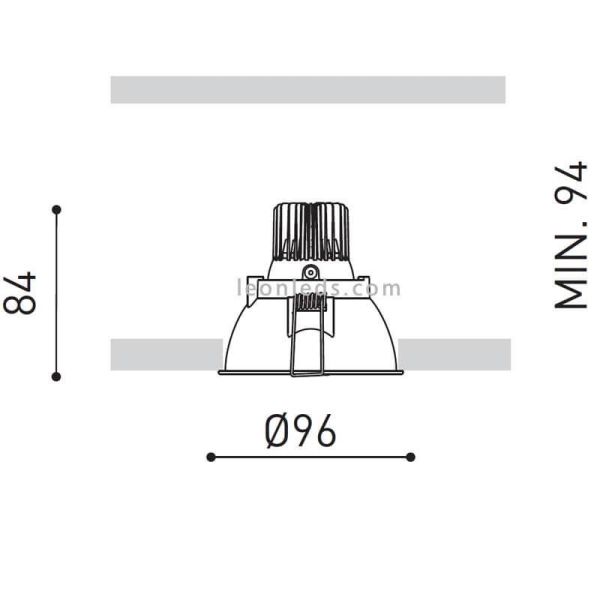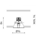 Modelo Gap LED redondo encastrado da marca ArkosLight, pode selecioná-lo com potência de 5w e 7,5W, disponível em branco, 3 tonalidades de luz 2700K, 3000K e 4000K, ângulo de feixe de 38º e intensidade luminosa não regulável em 5W de 750Lm com luz natural, 730lm com Warm light 3000K e 700Lm Very Warm Light 2700K e em 7.5W disponível sem regulação ou com regulação Phase Cut (Cut in phase), nesta potência a intensidade de luz é de 950Lm em luz muito quente 2700K , 1000Lm em luz quente 3000K e 1030Lm em luz natural 4000K.