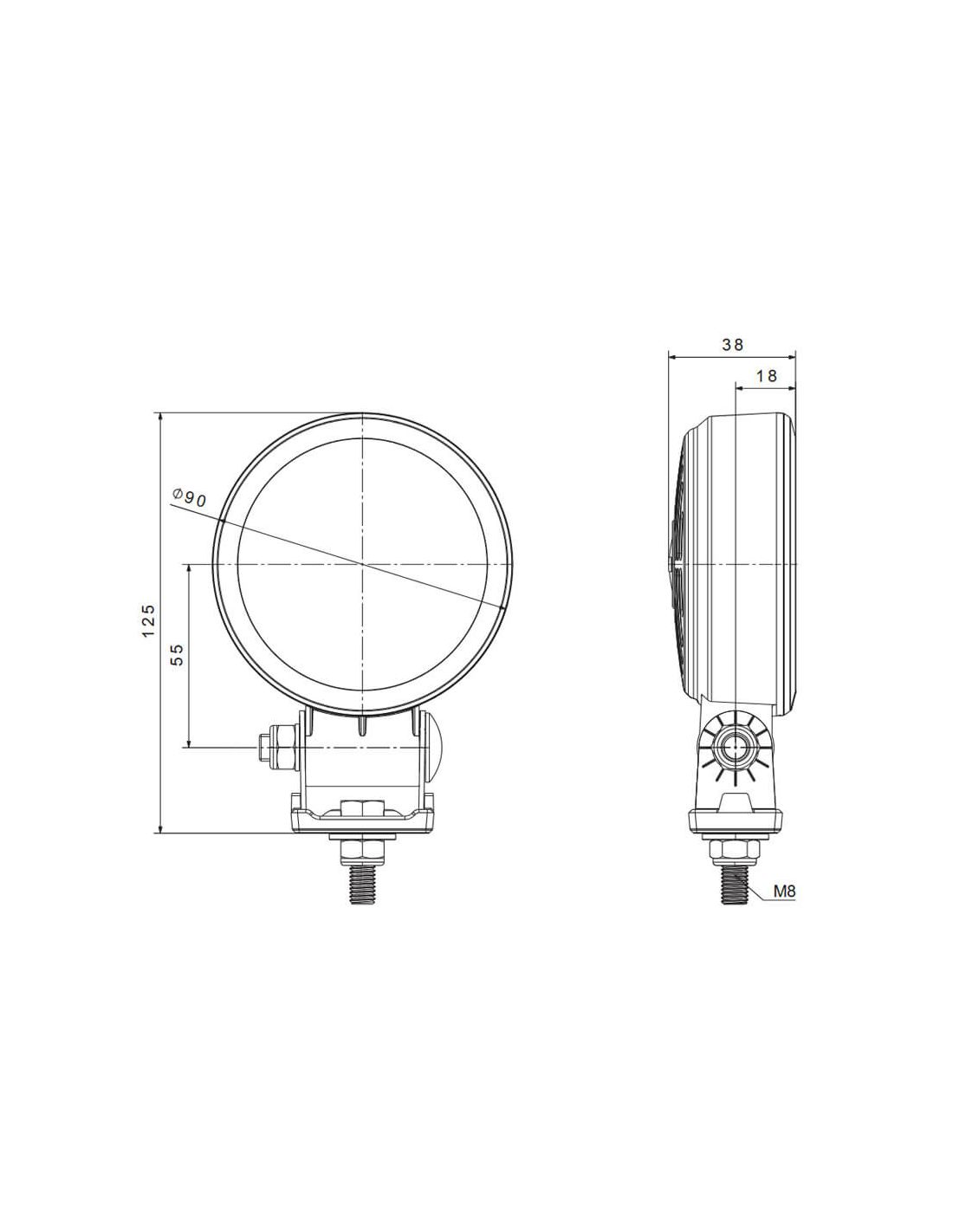 Seu feixe de luz focado (spot beam) permite iluminar áreas distantes com alta precisão , ideal para trabalhos noturnos, condução off-road ou máquinas que exigem um campo de visão estendido.
