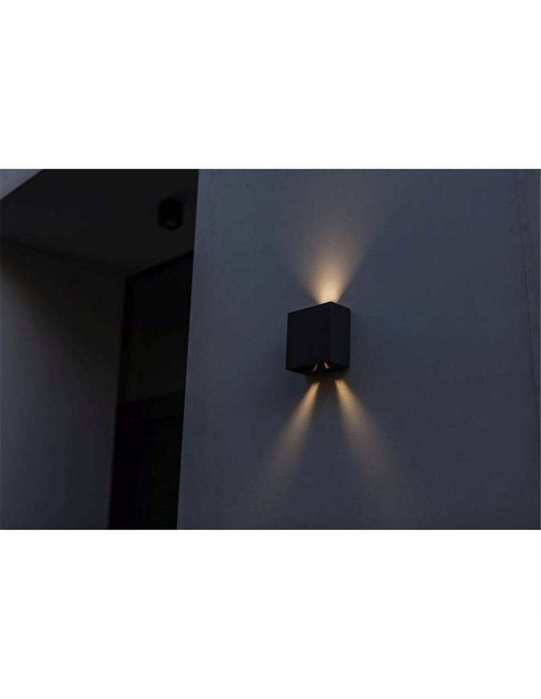 O aplique para exterior Gemini Beams foi concebido com corpo em alumínio de alta qualidade e difusor em vidro transparente, muito resistente e por isso adequado para utilização no exterior. Possui certificação IP54 contra água e outros elementos que possam causar deterioração. Para maior confiança, oferece garantia de 5 anos. Inclui LEDs.