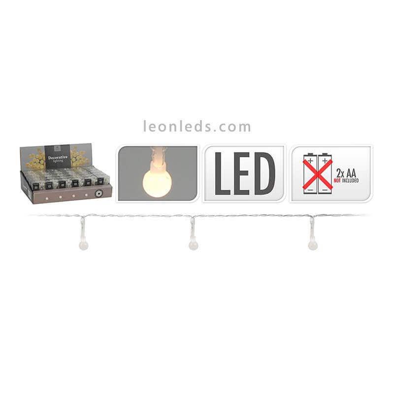 Esta guirlanda LED tem 20 8mm LEDs em forma esférica integrado no cabo transparente de 2,30 metros assim será ideal para complementar suas decorações de Natal e integrar com o mobiliário de sua casa. Com este guirlanda LED quente você pode definir seus jantares de Natal, estabelecimentos e espaços comerciais durante a temporada de Natal. Também. você pode usá-lo para o resto do ano como uma luz ambiental para decorar quartos e salas de estar.