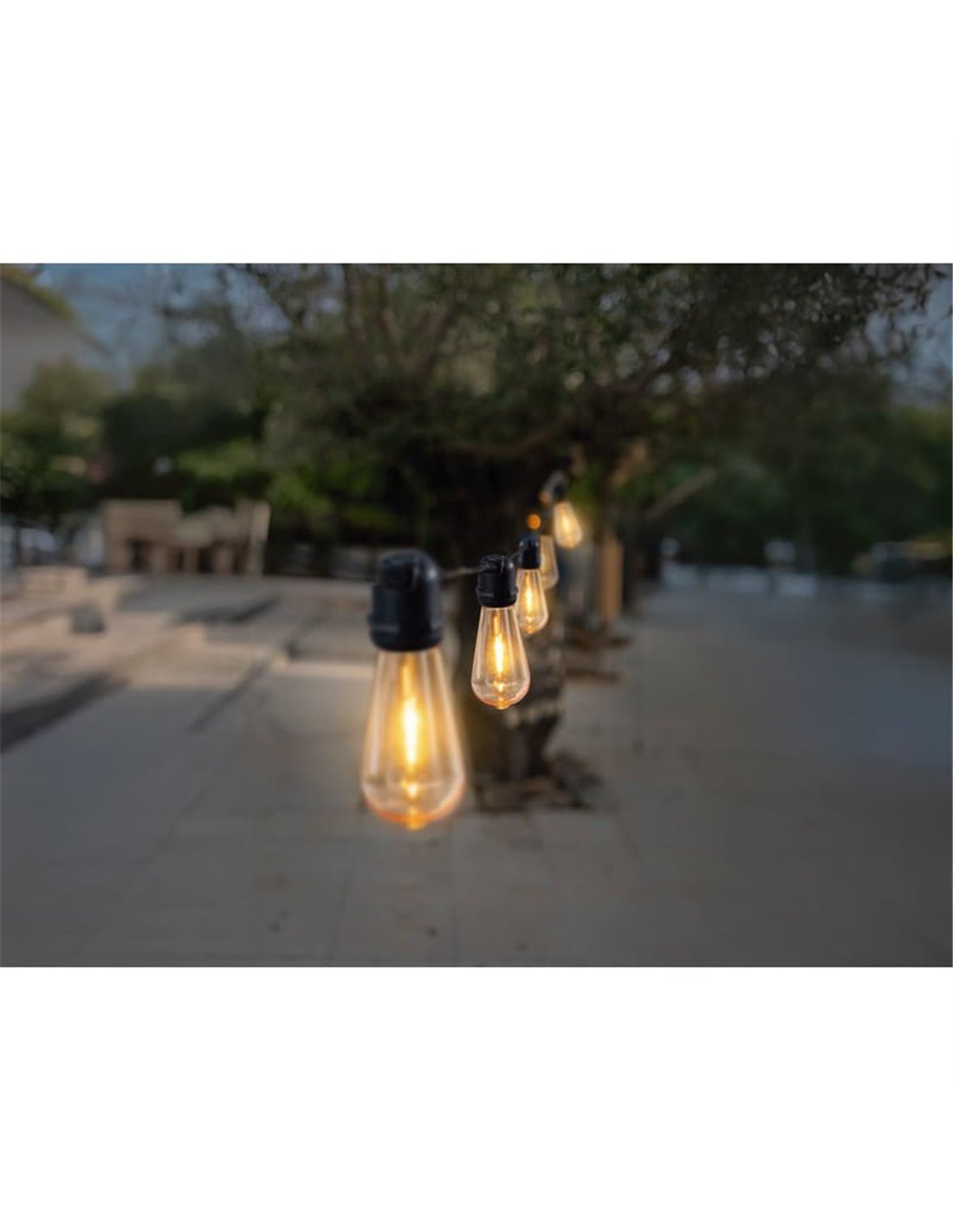 A guirlanda ALLEGRA 220V da New Garden é uma luminária decorativa ideal para criar ambientes quentes e aconchegantes. Seu design de 10 metros com 20 tomadas E27 permite personalizar a iluminação com as lâmpadas de sua preferência. Resistente à água e ao pó, é adequado para todos os tipos de eventos, tanto interiores como exteriores.