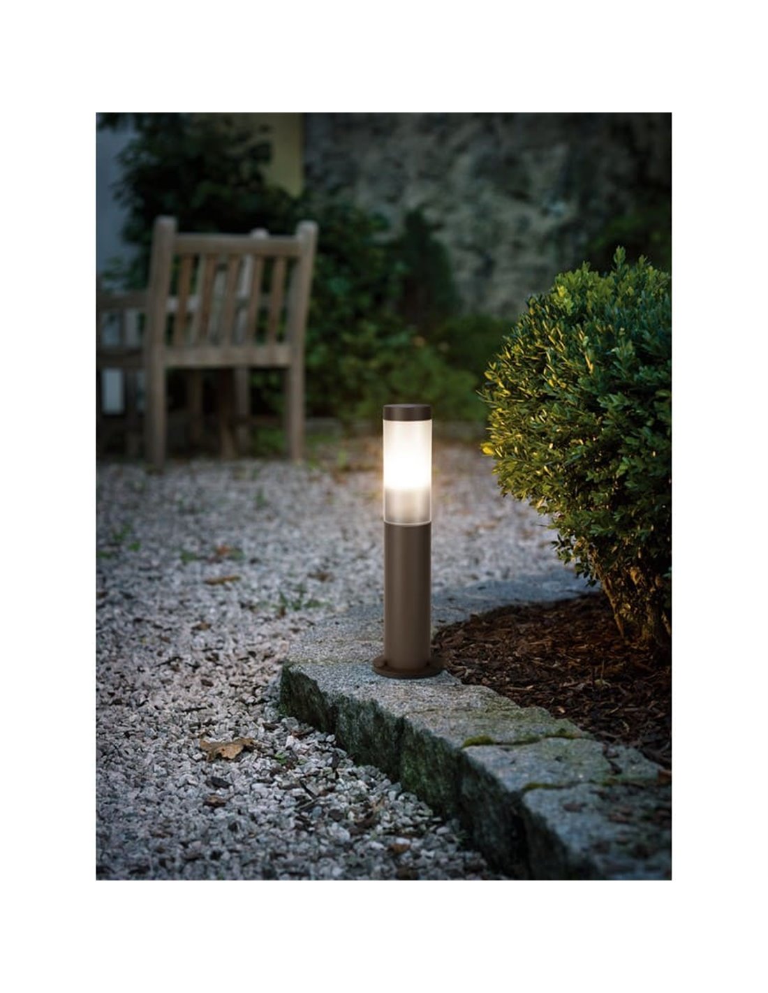 Esta lâmpada destaca-se pelo seu design sofisticado e funcionalidade avançada. A sua construção em aço inoxidável com acabamento castanho não só proporciona durabilidade e resistência às intempéries, mas também acrescenta um toque decorativo que complementa qualquer estilo arquitectónico. A compatibilidade com lâmpadas E27 permite-lhe selecionar a fonte de luz que melhor se adapta às suas necessidades, seja uma lâmpada LED para maior eficiência energética ou uma lâmpada incandescente para uma luz mais quente.
