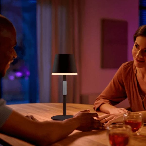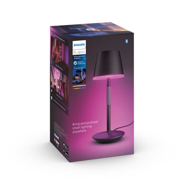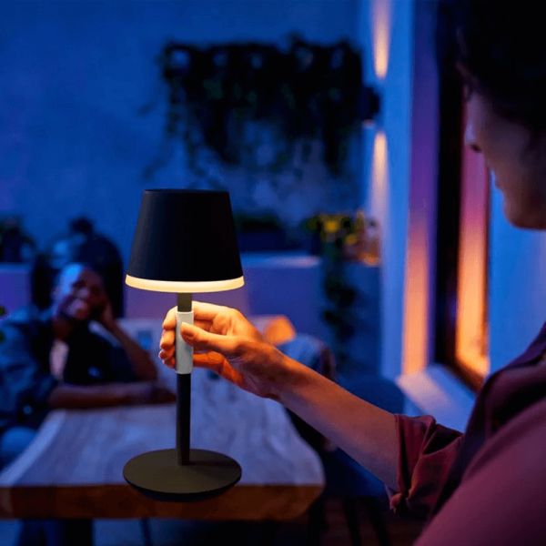 Leve sua luz inteligente para onde quiser com a lâmpada portátil Hue Go na cor preta . É perfeito para uso externo e possui uma alça de silicone para facilitar o transporte para qualquer lugar. Esta lâmpada também é muito resistente e garante vida útil de 10 anos .