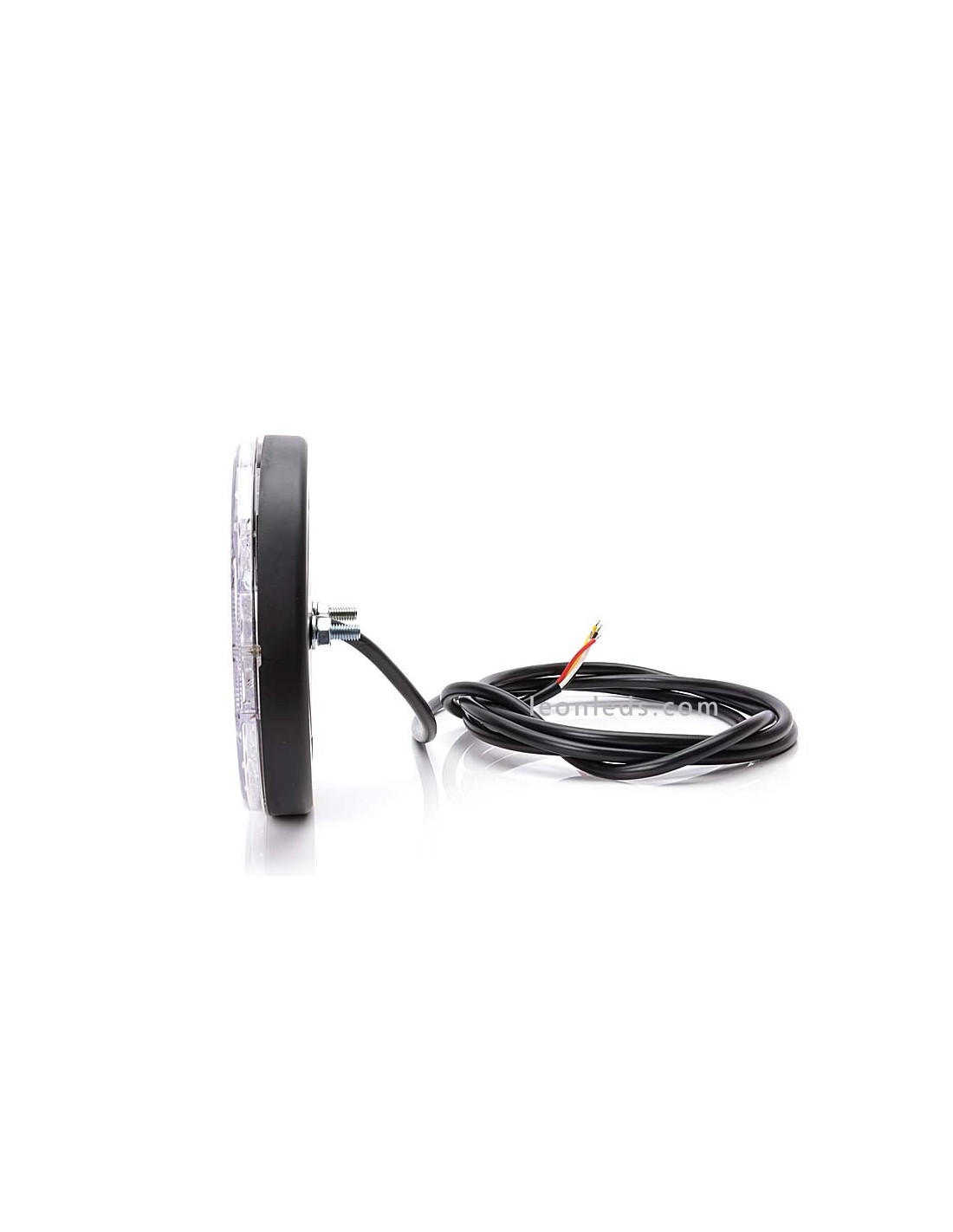Lanterna traseira redonda LED com tulipa transparente da marca Was com 3 funções e cabo de 2 metros.