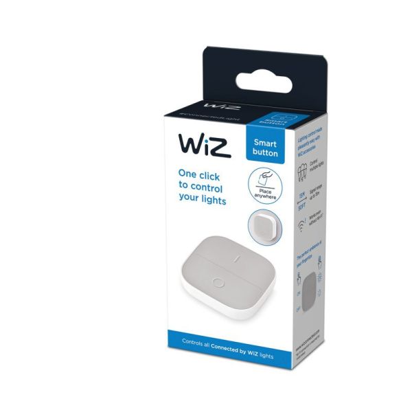 A forma como este botão inteligente WiZ funciona em qualquer lugar irá surpreendê-lo. Funciona com pilhas já incluídas e permite fixá-lo na parede ou num canto sem necessidade de parafusos ou também colocá-lo sobre uma superfície metálica com o íman interno. Fácil de transportar e controlar as luzes instantaneamente. Possui as seguintes dimensões: altura de 1,85 cm, comprimento de 6,4 cm e largura de 6,4 cm e peso líquido de 0,066 kg.