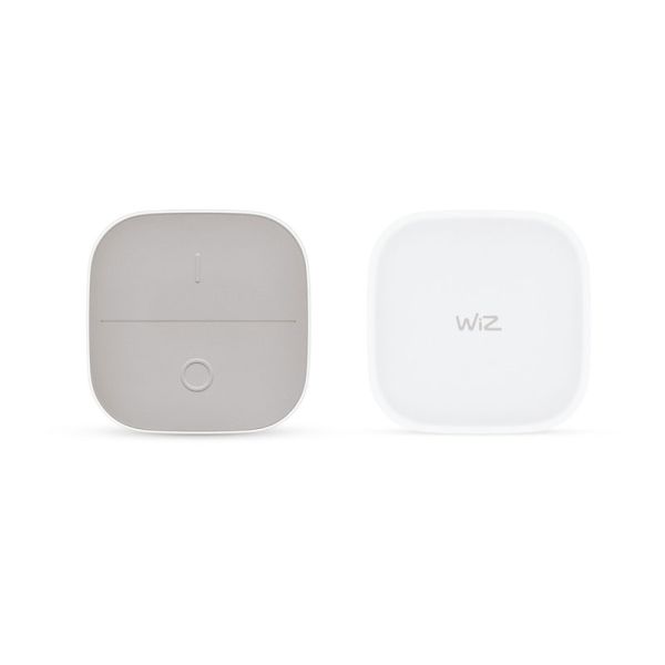 Este produto com acabamento branco e feito de plástico permitirá que você desfrute de um controle rápido e fácil das luzes WiZ. Ligar, desligar as luzes ou ajustar o brilho será muito fácil com apenas um toque. Conecta-se diretamente às luzes WiZ e funciona mesmo quando o Wi-Fi está desligado. Além disso, você pode controlar luzes e dispositivos em um raio de 15 metros em um ambiente interno com divisórias e paredes.