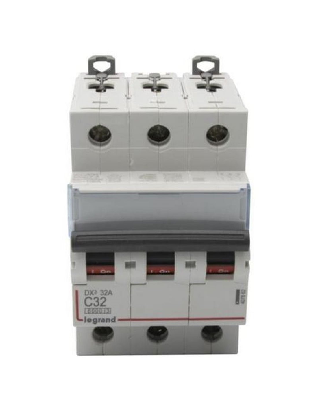 Interruptor magnetotérmico automático Legrand DX³ 3P 32 A com curva C e capacidade de interrupção de 6 kA, em conformidade com a norma IEC/EN 60898-1 . Terminais IP20 (à prova de toque), limitação de energia classe 3 e indicador ON/OFF para rápida identificação. Aceita cabo , pente garfo/dente e sistema de plugue HX³ . Formato de 3 módulos para trilho DIN, 400 V CA. Compatível com auxiliares DX³ e dispositivos de corrente residual para expandir funções.