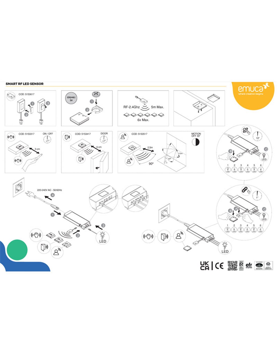 Interruptor táctil automático de luminarias, Emisor RF con sensor LED Smart touch/dimmer (táctil) 12V/24V DC, plástico, negro - Emuca