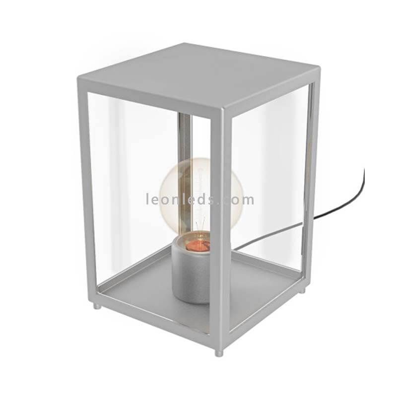 O candeeiro de mesa exterior IP44 cromado mate Alamonte da Eglo Iluminación é composto por um suporte em metal cromado mate e cúpulas de vidro transparente. Possui formato quadrado e estilo moderno adequado para instalação em ambientes externos graças ao seu grau de proteção IP44.