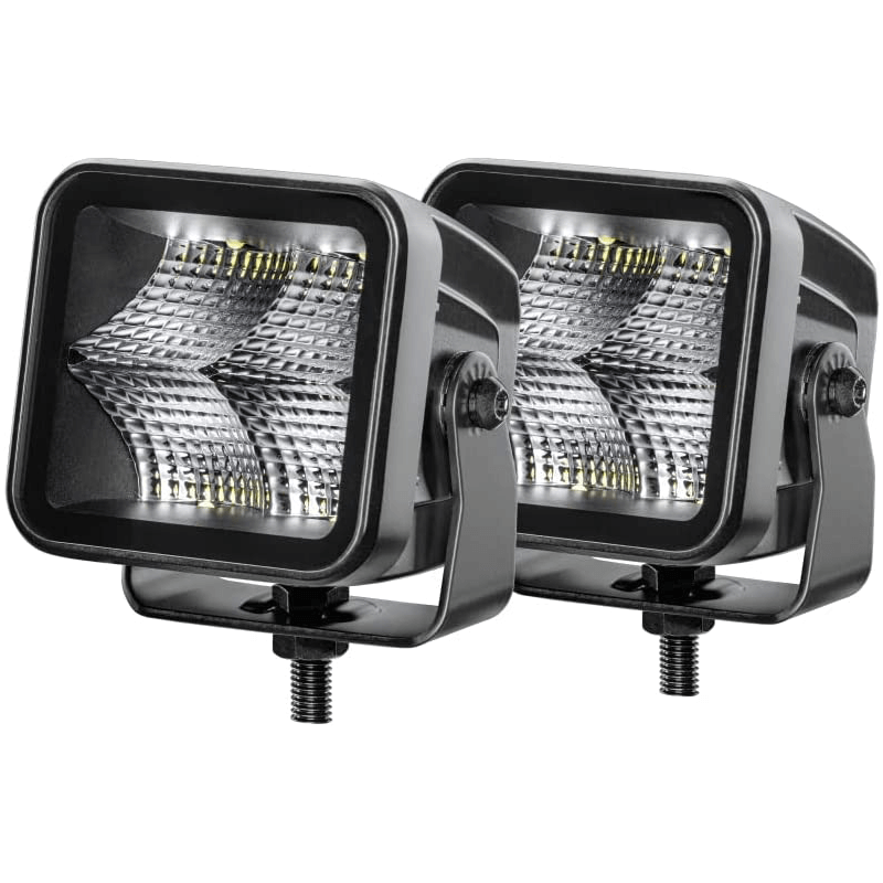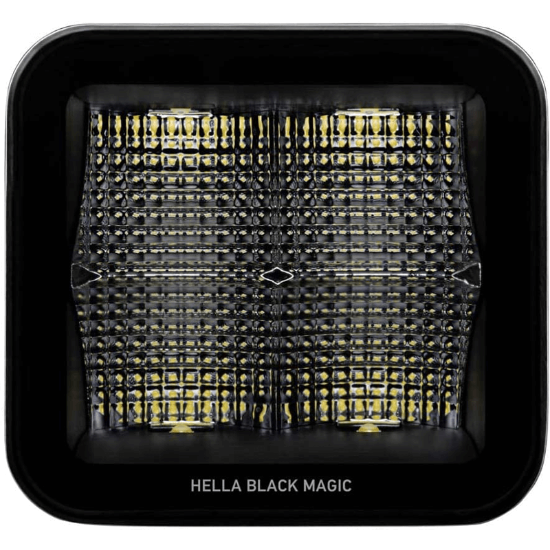 Pacote de 2 unidades de faróis LED quadrados Hella Black Magic Cube de 3,2" polegadas, esses faróis LED têm potência de 3000Lm com consumo de 40W, operam em tensões de 10V a 30V e a ótica é de amplo campo.