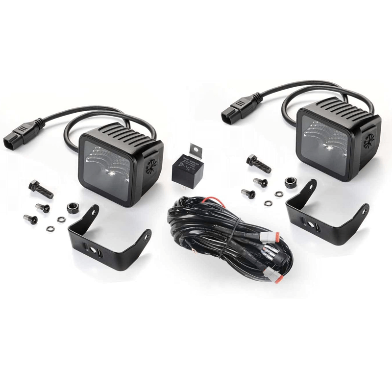 o resto. Os faróis Black Magic Cube atendem à mais alta classe de resistência à poeira e água, IP68/IP69K . Eles vêm em conjuntos de 2 unidades e incluem chicote elétrico com conector DT,