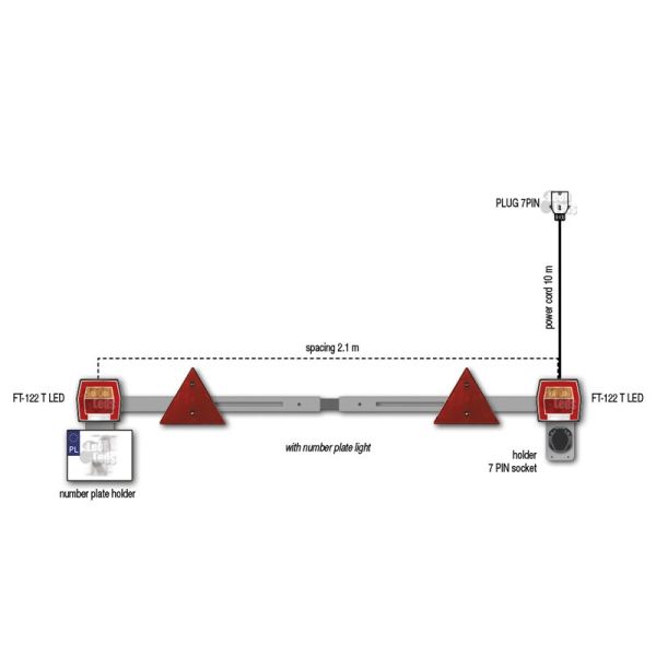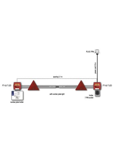 FT-122 T 2 Kit Faróis Traseiros Quadrados para carreta com 4 funções, placa, posição, freio e luz indicadora, barra fixa com comprimento de 160Cm e extensível até no máximo 210Cm, escolha a que melhor se adapta a sua instalação.