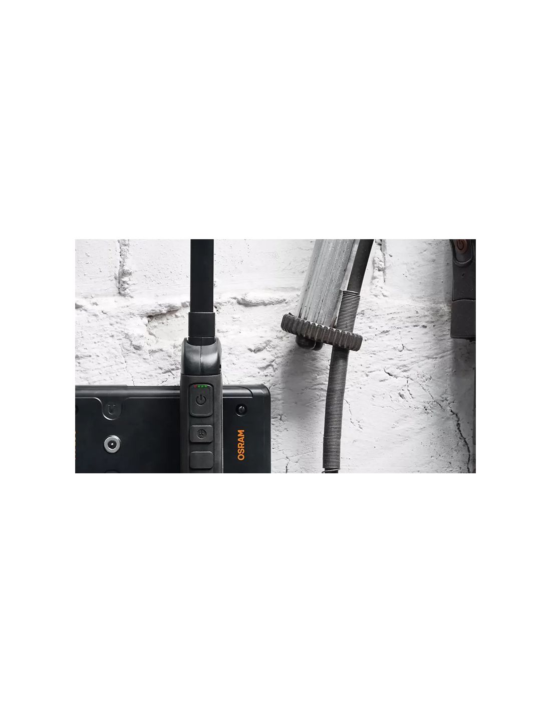 Lâmpada de inspeção LED OSRAM WIRE-FREE SLIM 600 com recarga magnética, 600 lm e design compacto (37 mm x 325 mm x 43 mm). Peso leve de 240 g ideal para oficinas. Tempo de carregamento 2,5 horas.