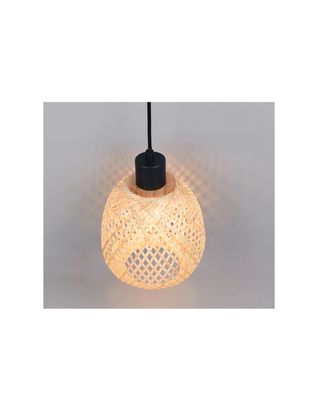 O candeeiro de teto AMELIE com acabamento em bambu e altura regulável é ideal para interiores de estilo natural. Funciona com lâmpadas E27 de até 10W (não incluídas), proporcionando uma iluminação quente e aconchegante.
