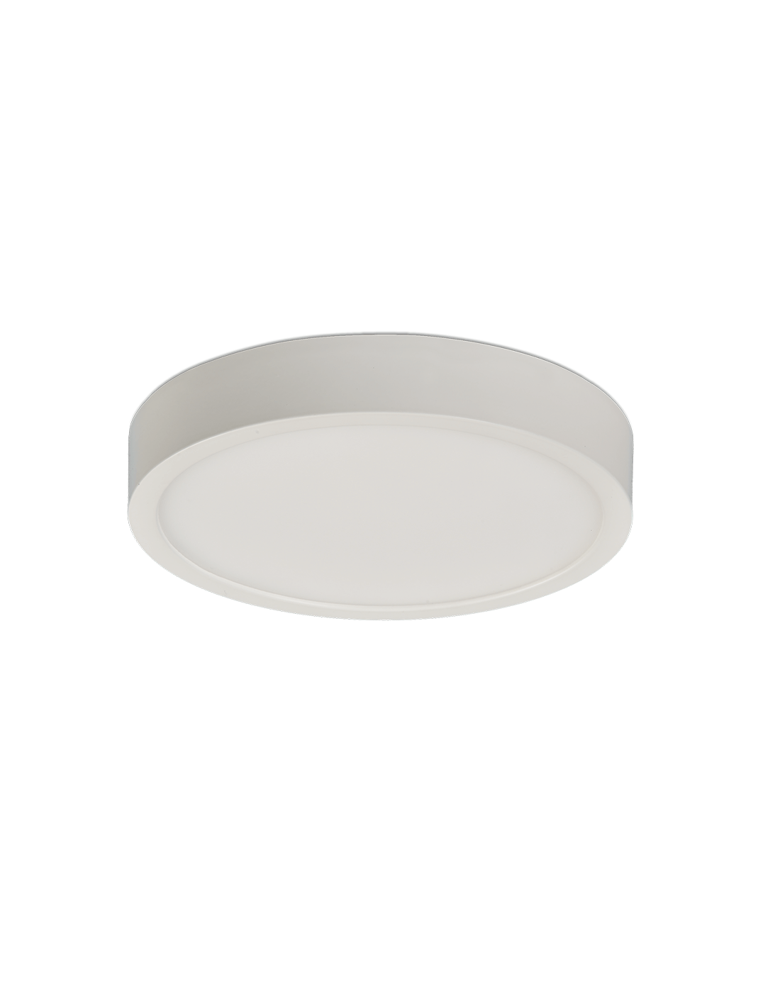 A luminária de teto LED Kore branca requer apenas uma luminária LED para operar a 12W de potência e com 950 lúmens para fornecer uma temperatura de cor quente de 3.000K a 4.000K. Seu corpo foi projetado combinando policarbonato e poliéster, obtendo certificação IP20 para resistência a sólidos maiores que 12 mm de tamanho e IK07.