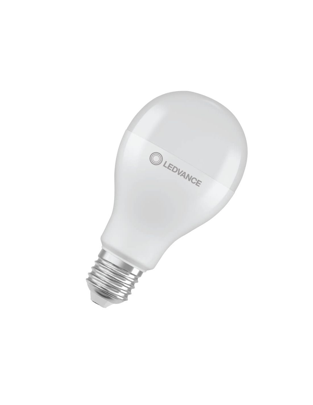 Lâmpada LED de 19W com rosca E27 , formato A65 da marca LedVance com potência de 19W equivalente a 150W de uma lâmpada incandescente que oferece intensidade luminosa de 2.452Lm . Seu tom de luz é de 2700k , um tom quente muito parecido com o que as antigas lâmpadas de filamento ofereciam. Este tom de Luz é recomendado para residências, hotéis, armazéns e áreas de descanso.