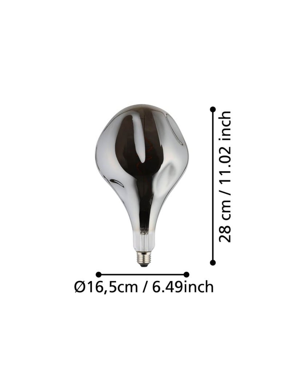 Lâmpada LED D165 com vidro preto fumê, 2700K e luz quente de 4W. Design decorativo e de grande porte. Soquete E27.
