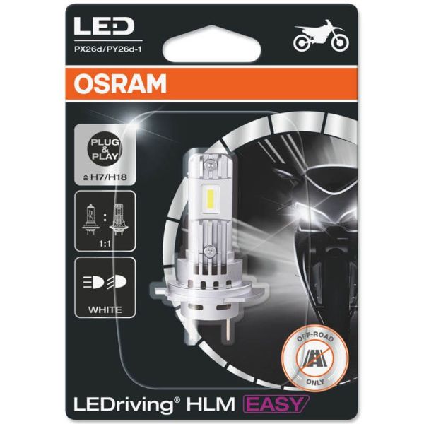 A mais recente tecnologia LED na Osram é a nova gama de lâmpadas LED H7 H18 Osram LedDriving HL EASY para os faróis da sua motocicleta. Estas lâmpadas são o resultado de anos de inovação tecnológica da Osram, alcançando um farol que excede as expectativas em todos os campos. Estas lâmpadas atingem uma luz branca de 6500K produzindo uma luz muito mais brilhante do que uma lâmpada de halogéneo convencional.