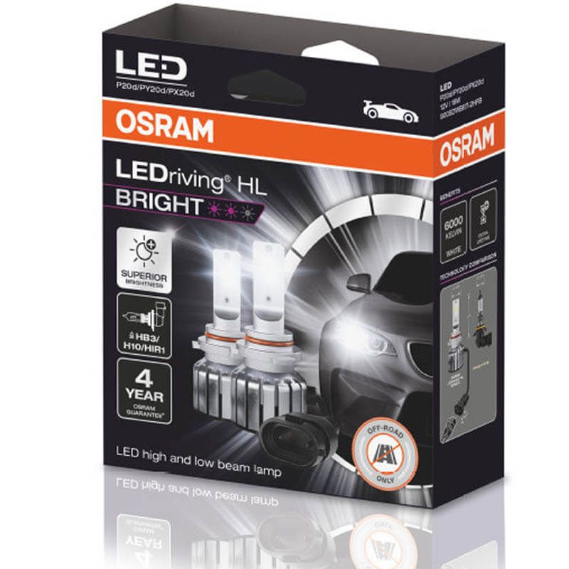 A mais recente tecnologia LED na Osram é a nova gama de lâmpadas HB3 H10 e HIR1 Osram LedDriving HL Bright LED para faróis de veículos, oferecendo 300% mais luz do que as lâmpadas convencionais. Estas lâmpadas são o resultado de anos de inovação tecnológica da Osram, alcançando um farol que excede as expectativas em todos os campos. Estas lâmpadas atingem uma luz branca de 6000K produzindo uma luz muito mais brilhante do que as lâmpadas de halogéneo convencionais.