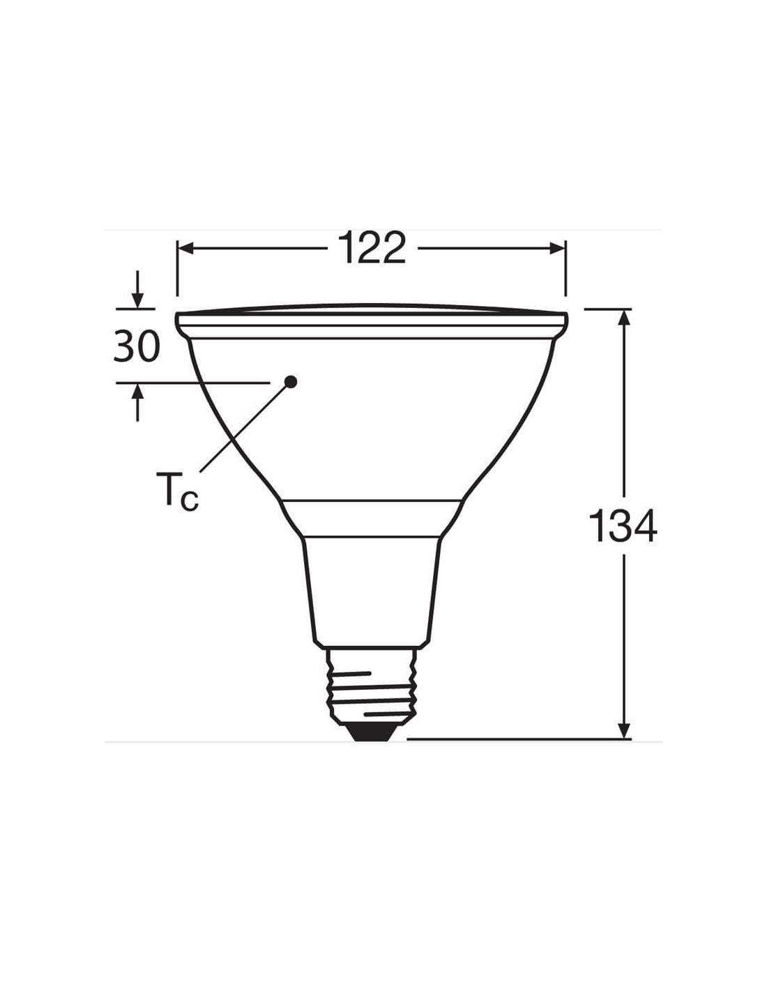 A Lâmpada PAR38 com casquilho E27 (Fat Thread) substitui as lâmpadas convencionais do tipo PAR38 de 120W, poupando assim até 90% do consumo de luz, oferece uma potência de 13,5W em vez de 120W, uma intensidade luminosa de 1035Lm e um tom de luz quente de 2700K com um ângulo de feixe de 30º.