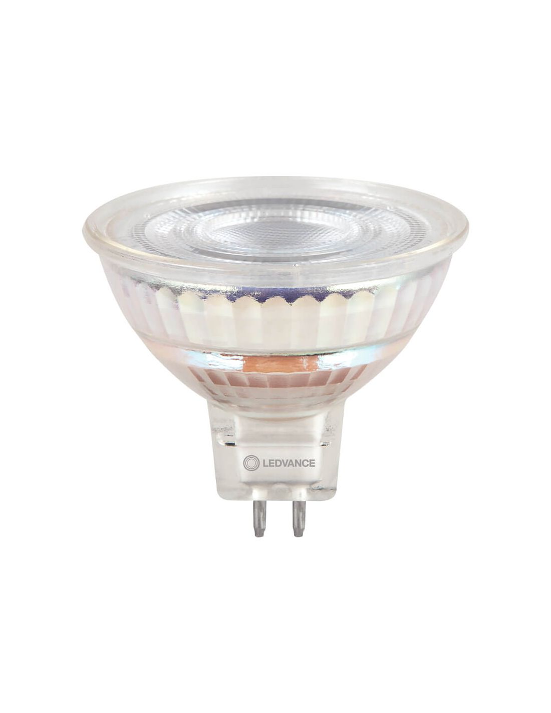 Lâmpada LED MR16 com potência de 8W equivalente a 50W das antigas lâmpadas halógenas, intensidade luminosa ajustável de 621Lm ou 1.150 candelas e ângulo de feixe luminoso de 36 graus. Esta Lâmpada é feita de vidro e possui uma óptica única e inovadora para uma distribuição homogênea de Luz, luz focada a 36º.