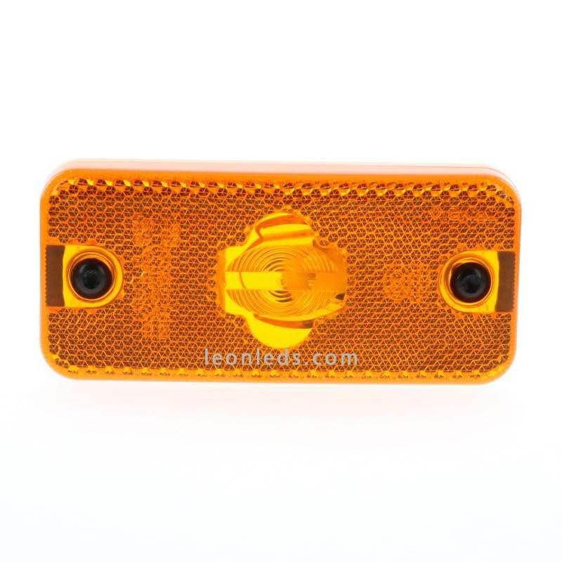 Daf, Iveco, Irisbus, Renault e Volvo Luz âmbar para instalar na lateral modelo Vignal FPL93, uma luz com lâmpada W5W e refletor para instalações de 12 volts 24 volts, inclui conector AMP MCP 2.8 2 pinos, ADR, EMC e homologação CE. Pode ser instalado tanto na horizontal como na vertical.